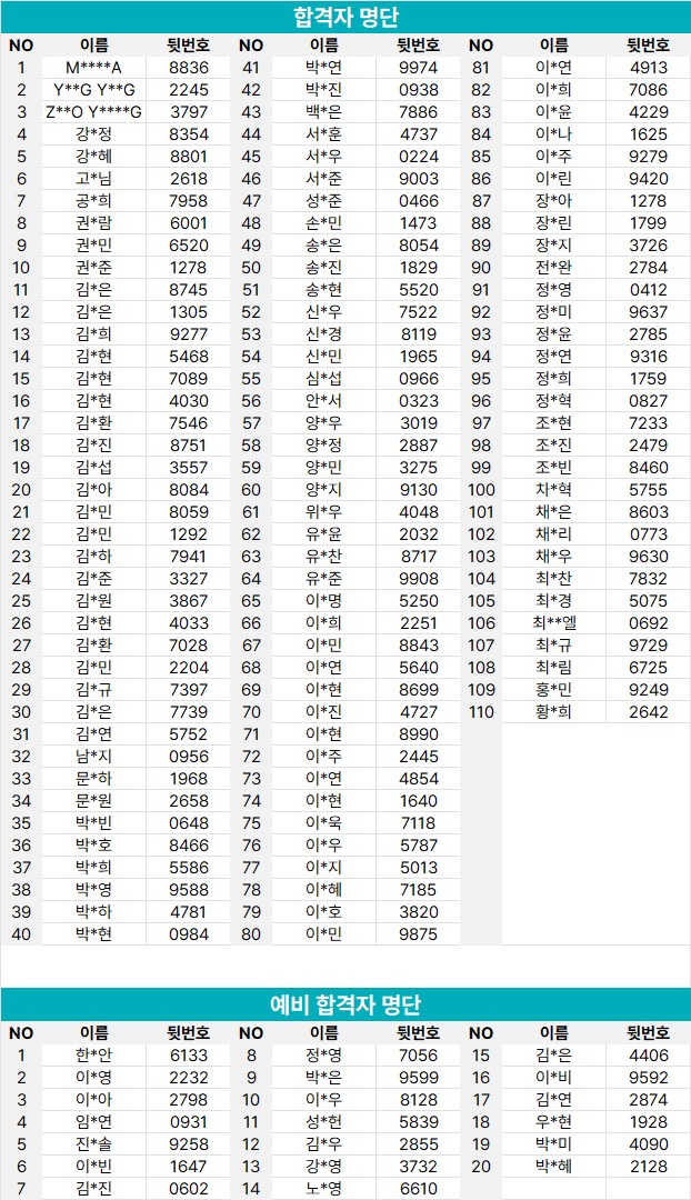 ※ 예비 합격자 중 최종 합격이 확정된 분들에게는 별도로 개별 연락드릴 예정입니다.